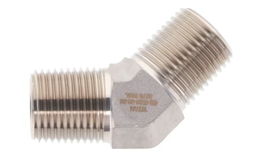 45° Elbow, 1/2" NPTF Male x 1/2" NPTF Male - Stainless Steel