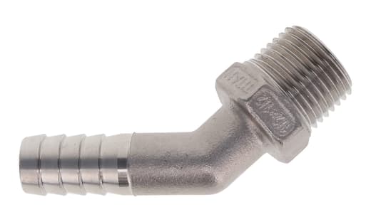 SS-HB-MP45 Stainless Hose Barb to Pipe Male Rigid, 45°- Stainless Barbed Hose End